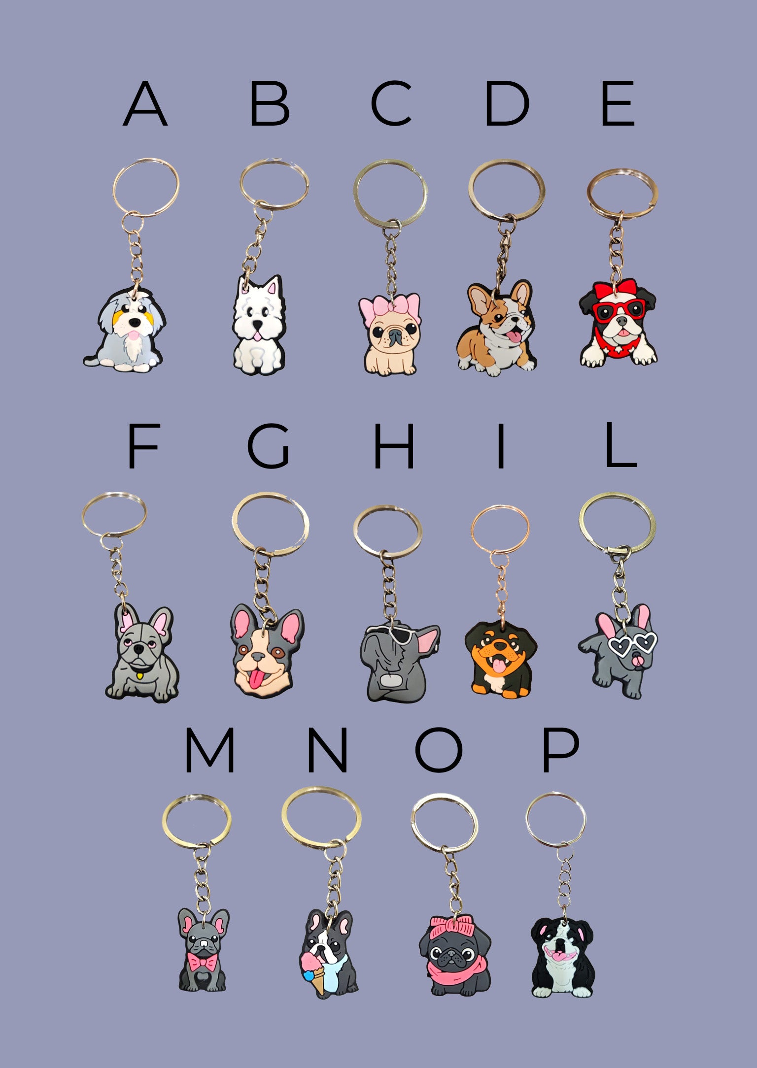 Piccoli portachiavi con Cane disponibile in diverse varianti realizzato in PVC Morbido