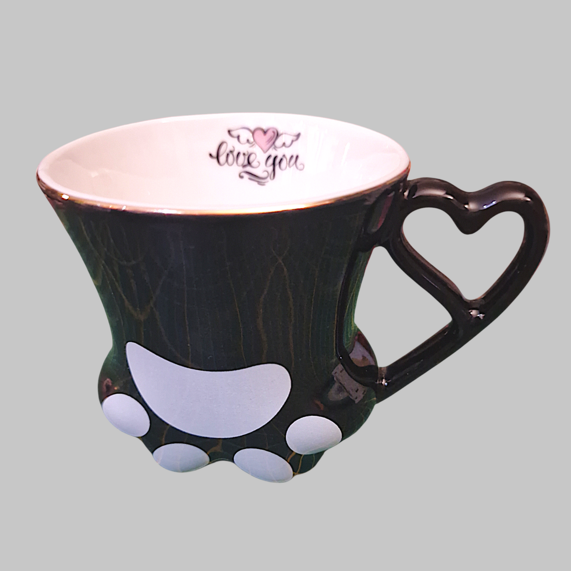 Tazza in ceramica tema tema zampa Gatto colore Nero con scritta "Love You"
